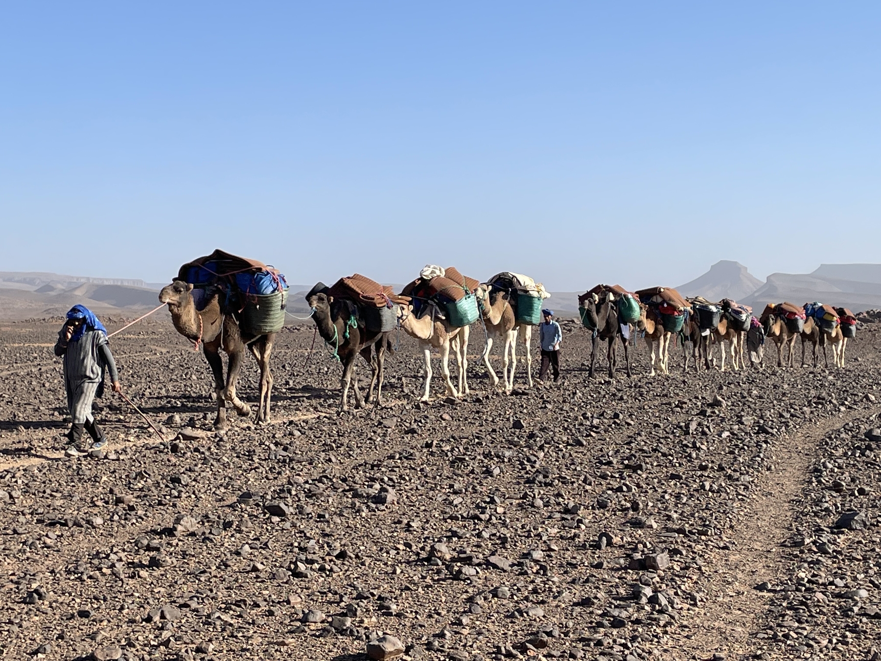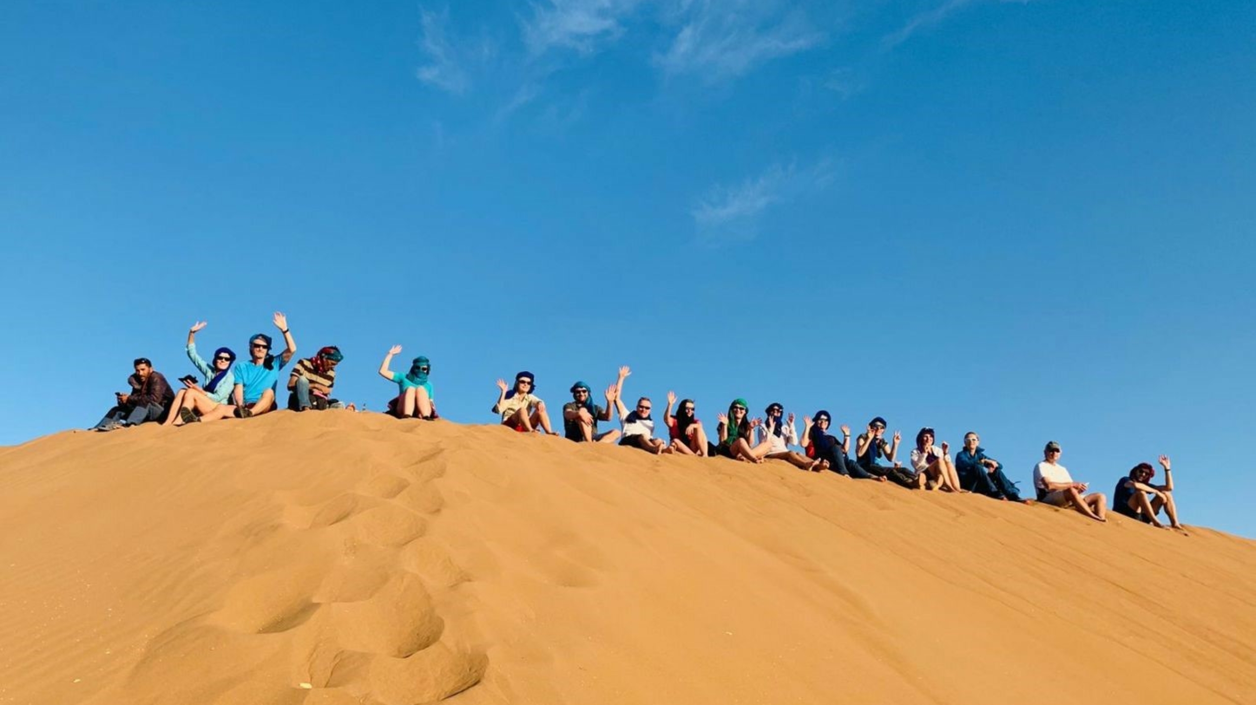 Vi blir møtt av våre marokkanske venner på flyplassen i Marrakech og kjørt til byens medina hvor vi skal bo på en riad, et tradisjonelt marokkansk hus, den første natten. På det enorme torget Djemaa el-Fna, De Dødes Plass, som ligger midt i medinaen får du følelsen av å spasere rett inn i tusen og én natt. Dette er et av de største, travleste og mest eksotiske torgene i Afrika, og syder konstant av liv. Her vrimler det med slangetemmere, akrobater, turister, fresende grillplater, musikere, spådamer, gatetannleger og hennatatovører. Dette torget har i århundrer vært åsted for slavemarkeder, halshogginger og handel. På kvelden spiser vi middag sammen og blir bedre kjent.