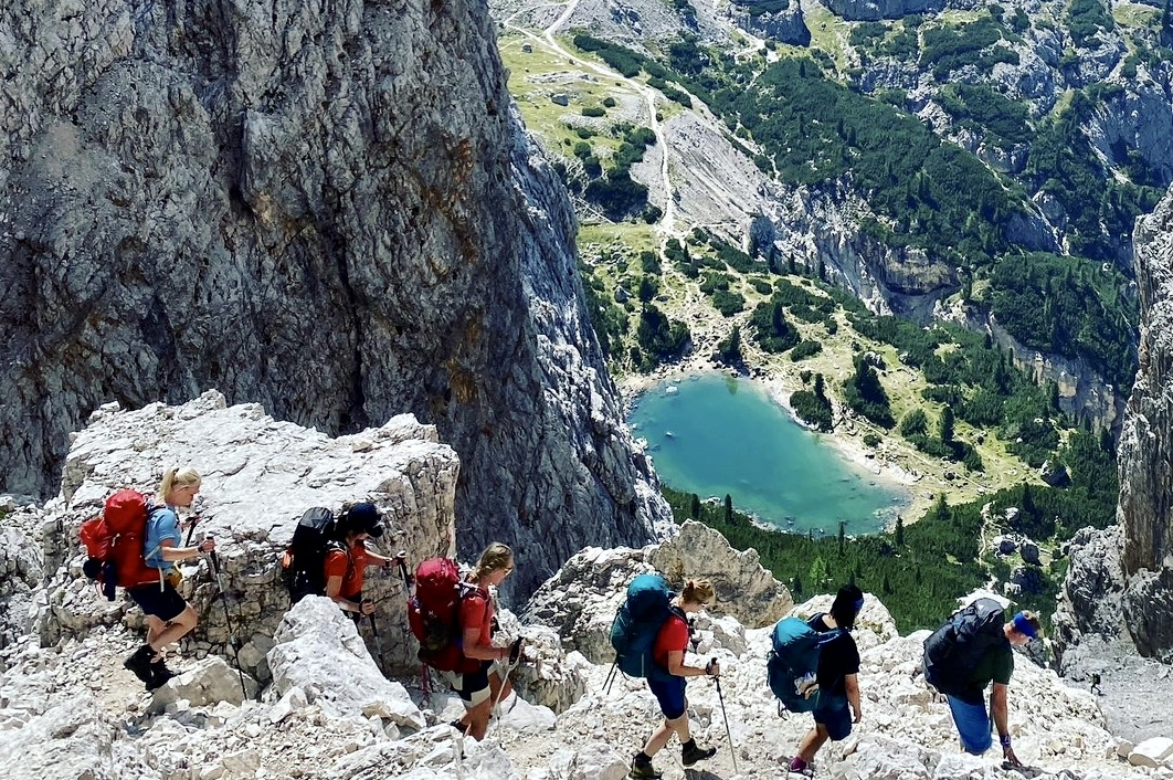 Vi flyr til Venezia, hvor for gruppeavganger fra Oslos så blir vi møtt av en buss som tar oss opp til OL-byen Cortina. Den sjarmerende fjellbyen ligger omtrent 1200 meter over havet – i hjertet av Dolomittene. Her bor vi på et trivelig hotell og spiser en fellesmiddag og går gjennom ukas turprogram. For faste avganger uten fly inkludert så vil vi ha muligheten til å arrangere en fellestransport fra Venezia til Cortina. For andre, så er oppmøtested i Cortina.