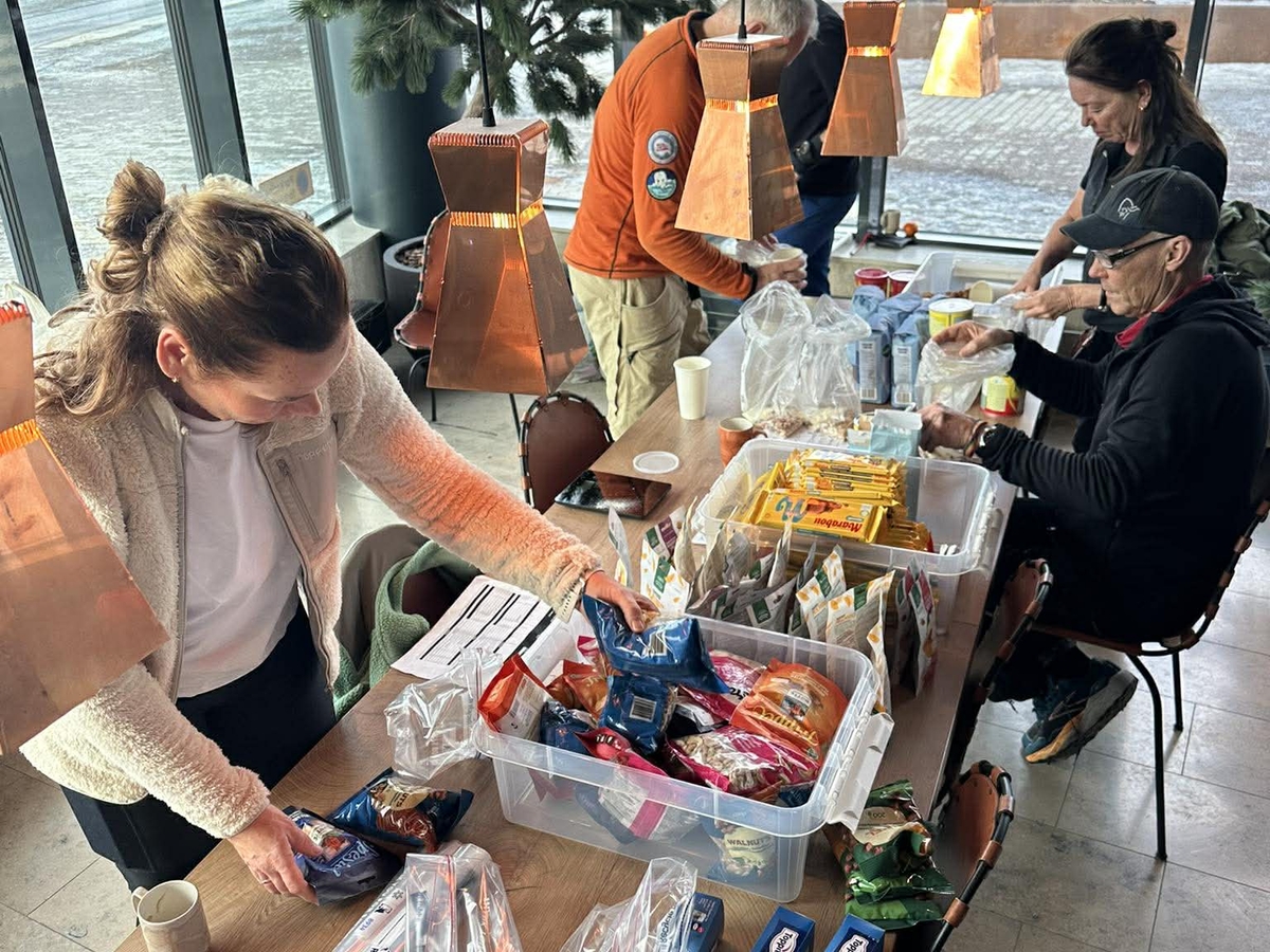 I løpet av de to siste dagene har vi tømt byen for sjokolade, nøtter, smågodt, tørket frukt, dopapir og alt annet vi trenger. Vi pakker forsyninger for turens første etappe til Ritsem som er ca 160 kilometer gjennom gjennom gjennom fantastiske og Majestetiske fjell i Sarek. Alt er pakket sirlig ned i poser og sekker, klart til å fortæres på vår vei. Matsjokk er et høyfrekvent ord når vi ser mengdene av mat som som har forsvunnet ned i pulkene.