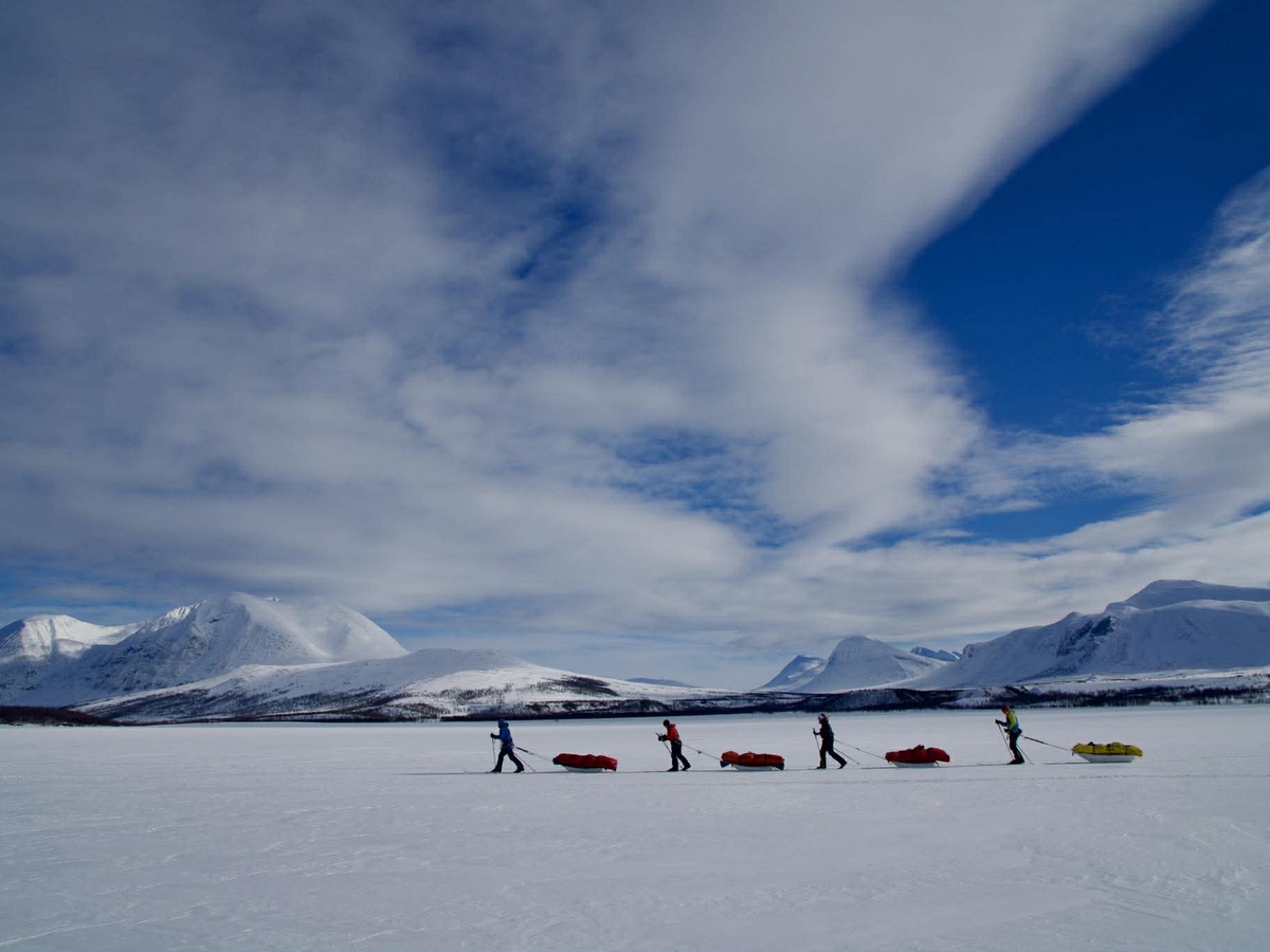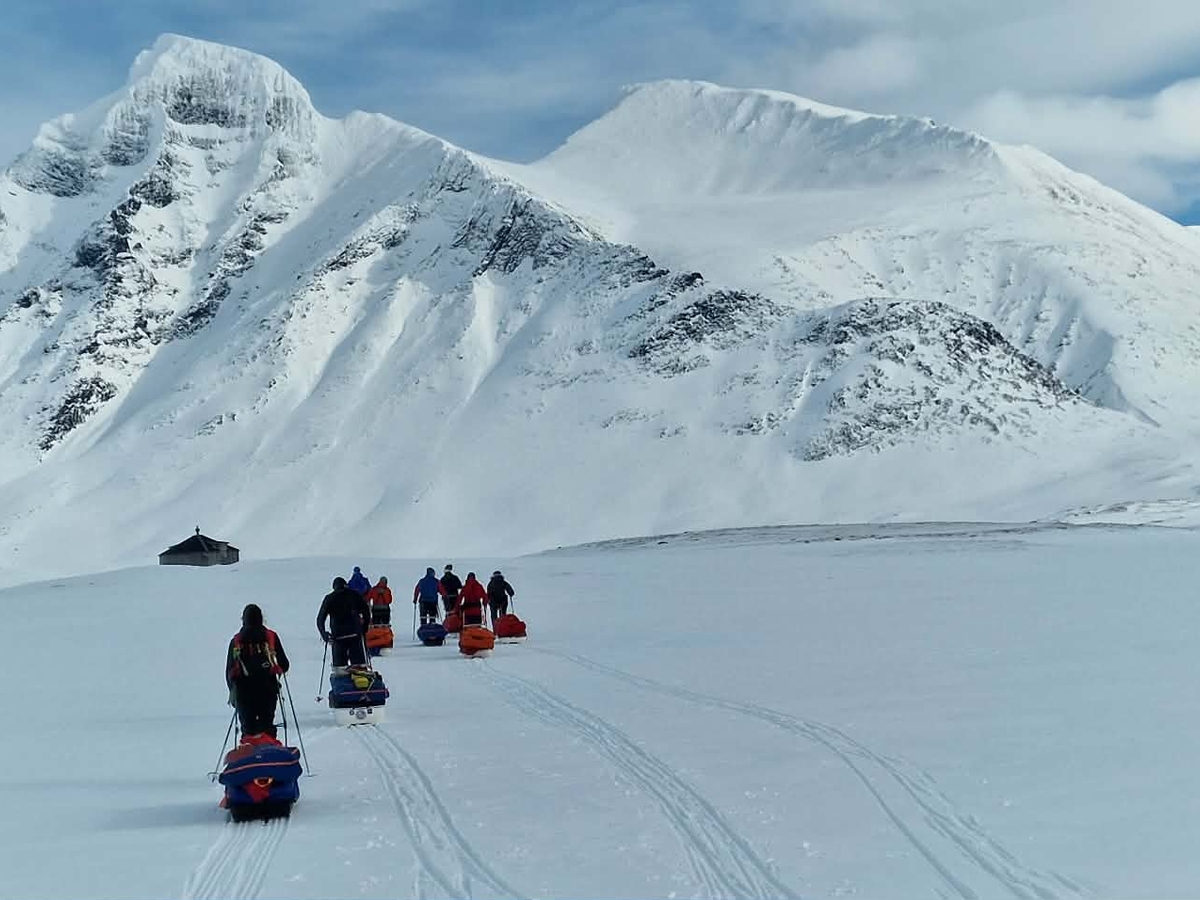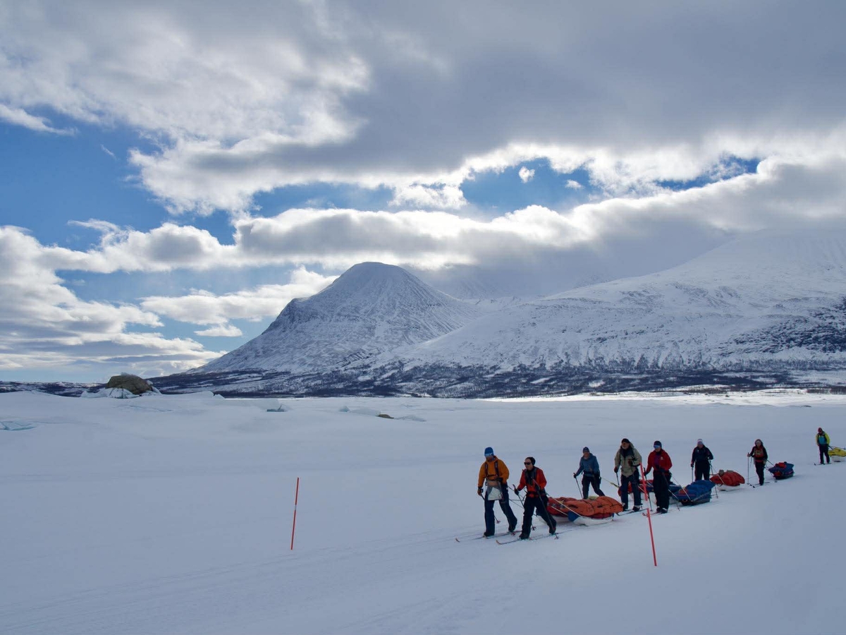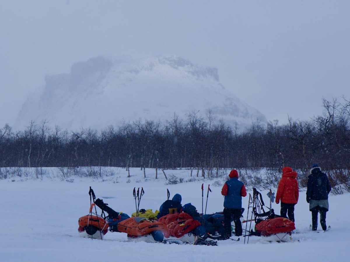 Da er vi igjen kommet oss på skiene og har satt nesen mot Abisko. Denne etappen er ca 120 kilometer. Første etappe starter med en Scootertur fra Ritsem til Sitasjaure!