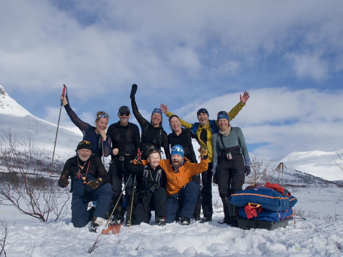 Gjengen er strålende og skjærer gjennom terrenget som pulkmaskiner. Litt knirk i noen rygger og bein, men ikke noe som en ti-minutters tøyeøkt på morgenen ikke kan løse.