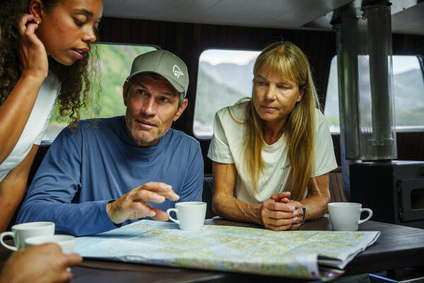 Vi møtes på hotellet kl.18:00, hvor turen vår starter. Etter å ha funnet oss til rette, samles vi til en deilig velkomstmiddag for å bli kjent med de andre reisende og guiden som skal lede oss på reisen. Utover kvelden begir vi oss ut på en midnattssoltur til Reinebringen. Stien belønner oss med en fantastisk panoramautsikt over fjordene og de ruvende fjelltoppene, alt badet i det gylne lyset fra Nord Norges endeløse dagslys – en uforglemmelig start på eventyret vårt.